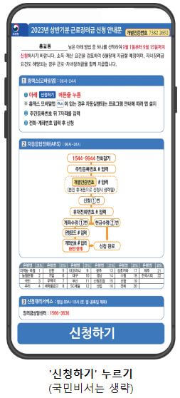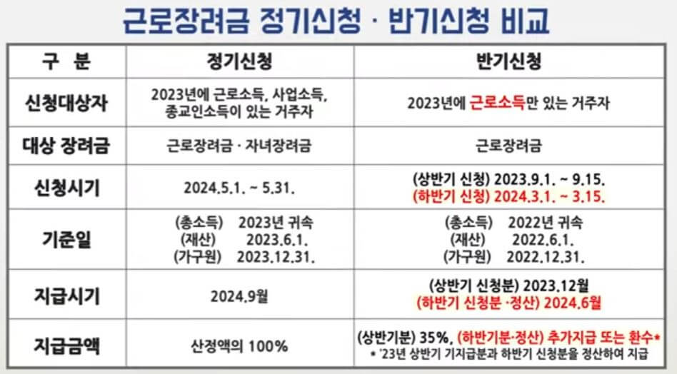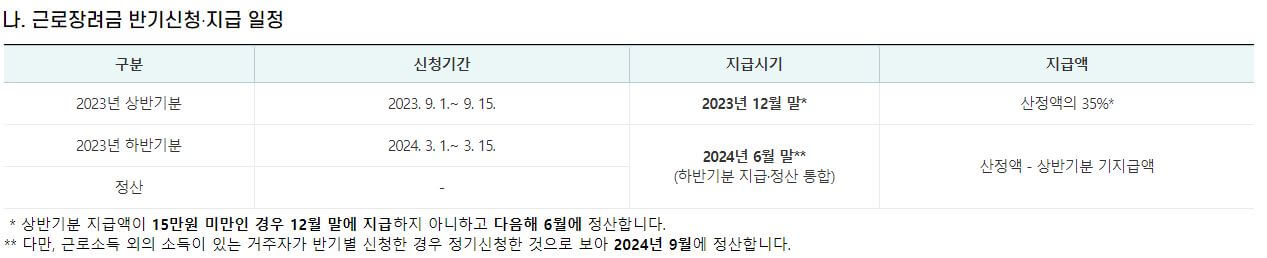 - 지급시기: (상반기 신청분) '23.12월, (하반기 신청분·정산) 2024.06월