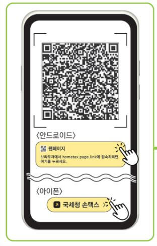 4. 우편안내문에서 바로 신청: 신청안내문의 QR코드 스캔 → 홈택스 모바일앱 신청화면으로 이동 → 주민번호 7자리 입력하고 신청