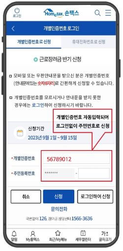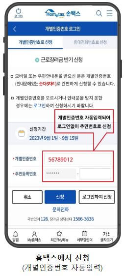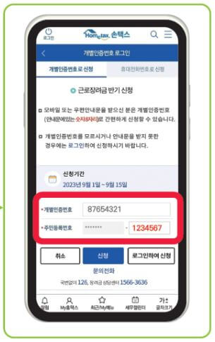 3. 홈택스(모바일 또는 PC): 신청안내 대상자가 안내문 등에서 확인한 개별인증번호로 간편 신청가능